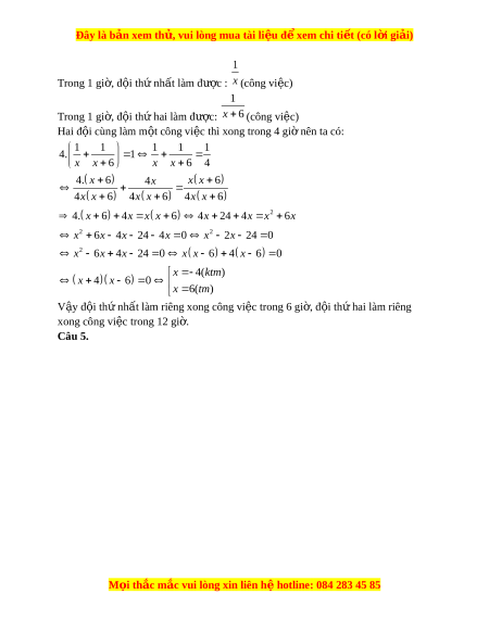 ờ gian làm riêng xong công vi c c ệ a đ ủ i ộ th hai ứ là x 6 (gi ) ờ M i