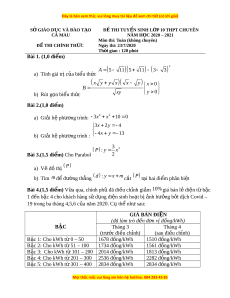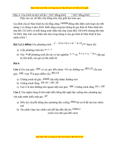 ế 155 kWh và mỗi tháng m c ứ đi n t ệ iêu th ch ụ a ư đ n 100 kWh nh ế ng l ư n ớ h n ơ 50 kWh. Hãy tính xem đi n t ệ iêu th t ụ rong tháng 4 c a ủ gia đình dì Năm Hu l ệ à bao nhiêu kWh ? 2 2 Bài 5.(1,5 đi m ể ) Cho phư ng t ơ