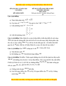 ọ thắc mắc vui lòng xin liên hệ hotline: 084 283 45 85 SỞ GIÁO D C Ụ VÀ ĐÀO T O Ạ Đ Ề THI TUY N Ể SINH L P Ớ 10 THPT CAO B N Ằ G NĂM H C Ọ 2019-2020 Môn: TOÁN Đ C Ề HÍNH TH C Ứ Th i