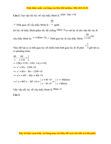 Câu 2. G i v n t c lúc v c a th y Minh là ọ ậ ố ề ủ ầ