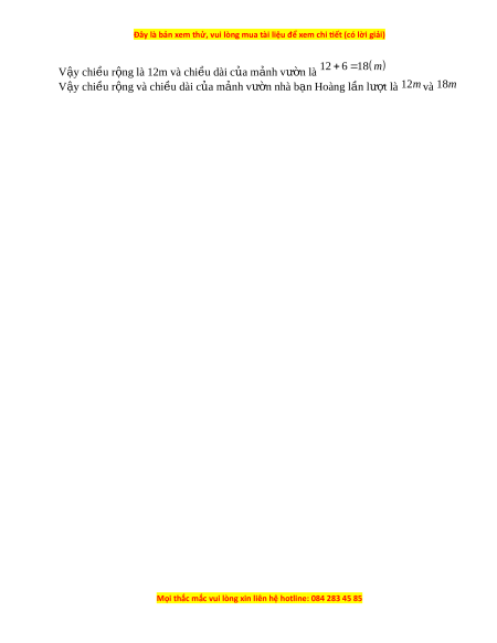 ạ Hoàng là x m x 0 Vì chi u ề dài l n h ớ n chi ơ u r ề ng 6m ộ nên chi u dài ề m nh v ả ư n l