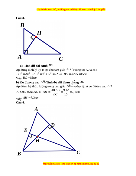 AH.BC A . B AC AH 7 , 2cm BC 15 V y ậ AH 7 ,2cm Câu 4.