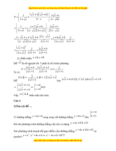 1 (do2 x 1 0 2 x 1 1 x 0 (tm) x 4 2 x 1 5 V y ậ x 0; 4 th a m ỏ ãn bài toán. Câu 3. 1)Tìm a,b đ …. ể a 4 Vì đư ng ờ th ng ẳ y a