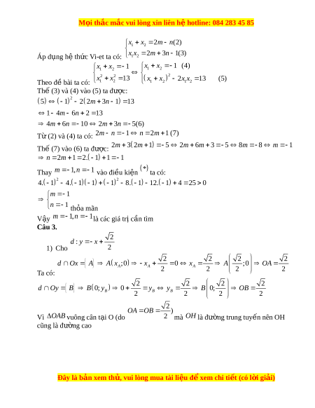 ọ thắc mắc vui lòng xin liên hệ hotline: 084 283 45 85 x x 2 m n(2) 1 2 Áp d ng ụ h t ệ h c ứ Vi-et ta có: x x 2