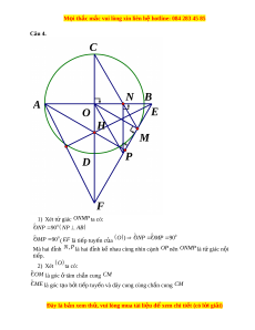 qua N và vuông góc v i ớ AB c t ắ EF t i ạ P 1) Ch ng ứ minh t gi ứ ác ONMP là t gi ứ ác n i ộ ti p ế 2) Ch ng