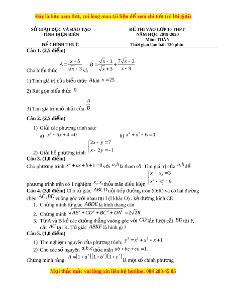 ệ xem ể chi ti t ế (có l i ờ gi i ả ) SỞ GIÁO D C Ụ VÀ ĐÀO T O Ạ Đ Ề THI VÀO L P Ớ 10 THPT T N Ỉ H ĐI N Ệ BIÊN NĂM HỌC 2019-2020 Môn: TOÁN Đ C Ề HÍNH TH C Ứ Th i