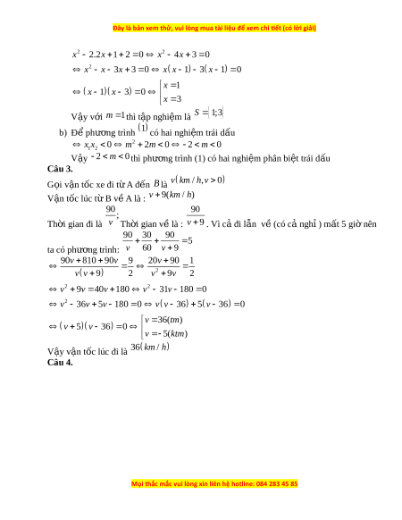 ậ 2 m 0 thì phư ng t ơ rình (1) có hai nghi m ệ phân bi t ệ trái d u ấ Câu 3. G i ọ v n t ậ ốc xe đi t ừ A đ n