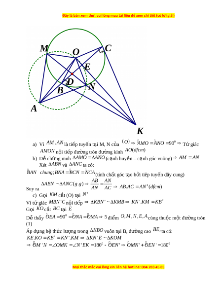 B AC AN (dfc ) m c) G i ọ KM c t ắ (O) t i ạ N ' Vì t gi