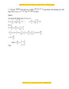 ể B và C (AB AC, đư ng t ờ h ng ẳ d không đi qua tâm O) a) Ch ng ứ minh t gi ứ ác AMON là t gi ứ ác n i ộ ti p ế b) Ch ng ứ minh 2 AN . AB AC c) Hai ti p t ế uy n ế c a đ ủ ư ng t ờ ròn O t i ạ B và C c t ắ nhau t i ạ K. Ch ng ứ minh r ng ằ đi m ể K luôn thu c ộ m t ộ đư ng t ờ h ng c ẳ đ ố nh khi ị đư ng t ờ h ng ẳ d thay đ i ổ và đư ng ờ th ng ẳ d th a ỏ mãn đi u ki ề n đ ệ bài ề Câu 5. (1,0 đi m ể )