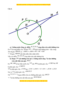 ộ nhà máy theo kế ho ch ph ạ i ả làm tổng c ng 300 s ộ n ph ả ẩm. Nh ng khi ư th c hi ự n t ệ hì phân xư ng ở 1 vư t ợ m c 10% ứ so v i ớ k ho ế ch, ạ phân xư ng I ở I vư t ợ m c ứ 20% so v i ớ k ho ế ch. ạ Do đó cả hai phân xư ng ở đã làm đư c ợ 340 s n ả ph m ẩ . Tính s s ố n ph ả m ẩ m i ỗ phân xư ng ở ph i ả làm theo k ho ế ch. ạ Câu 4. (3,5 đi m ể ) Cho đư ng t ờ ròn ; O R và đư ng t ờ h ng ẳ d không qua O c t ắ đư ng t ờ ròn t i ạ hai đi m ể , A . B Lấy m t ộ đi m ể M trên tia đ i ố c a ủ tia B , A kẻ hai ti p t ế uy n ế MC,MD v i ớ đư ng
