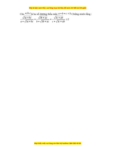 ãn a b c 3 .Ch ng ứ minh r ng : ằ 3a bc 3b ac 3c ab 2