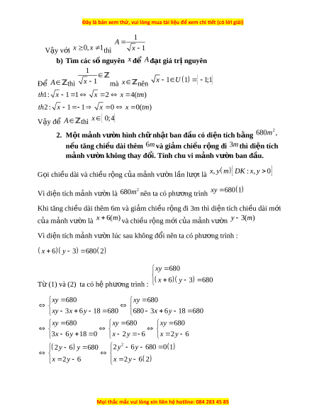 b) Tìm các số nguyên x đ ể A đ t ạ giá tr nguyên ị 2 2. M t ộ m nh v ả ư n ờ hình ch nh ữ t ậ ban đ u có ầ di n t ệ ích b ng ằ 680m , n u t ế ăng chi u
