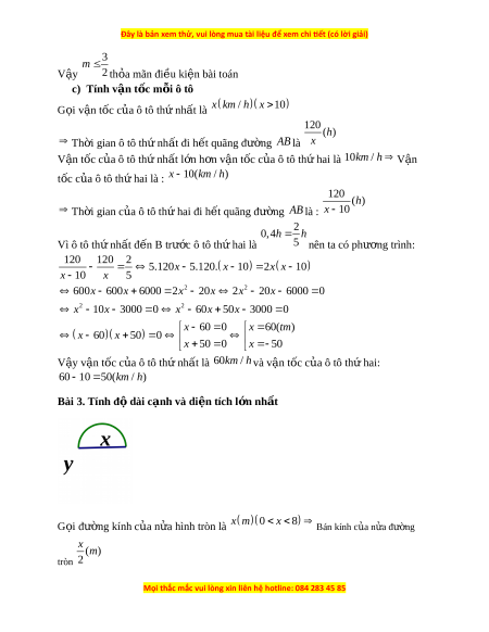 ấ là 60km / h và v n ậ tốc c a ô t ủ ô th hai ứ : 60 10 5 0(km / h) Bài 3. Tính đ dài ộ c nh và d ạ i n t ệ ích l n nh ớ t ấ G i ọ đư ng kí ờ nh c a n ủ a