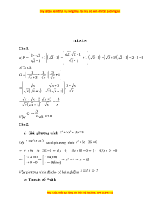 ĐÁP ÁN Câu 1. 2 2 1 2 2 a)P 1 2 1 1 2 1 2 1 2 1 2 1 1 2 1 2 1 b) Ta có: 1 1 3 Q 1 x 3 x x x x 3 3 x . x x 3 x x 3 x x x 3 x 3 3 . x x 3 x x 3 Q V y ậ x v i ớ x 0 Câu 2. a) Giải phư ng t ơ rình 4 2