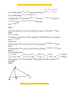 ổ B tăng thêm 14% so v i ớ quý I nên tổ B s n ả xu t ấ đư c ợ 114% y 1 ,14 y (s n ả phẩm) Ta có hệ phư ng ơ trình: x y 610 1 ,1x 1,1y 671 0,04 y 10 x 250 x 250( tm) 1,1x 1,14y 681 1,1x 1,14y 681 x 610 y y 610 250 y 360( tm) V y ậ trong quý I, T ổ A s n ả xu t ấ được 360 s n ph ả ẩm, tổ B s n ả xuất đư c ợ 250 s n ph ả ẩm Câu 4.