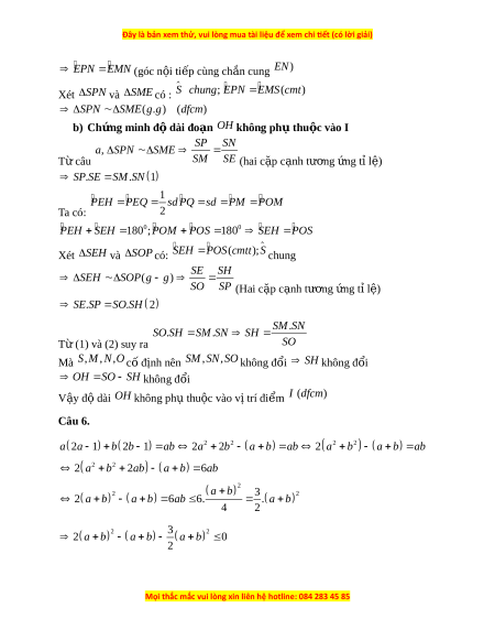 ứ minh tam giác SPN và tam giác SME đồng d ng ạ b) Ch ng ứ minh đ dài ộ đo n ạ OH không ph t ụ hu c vào v ộ ị trí c a đi ủ m ể I. Câu 6. (1,0 đi m