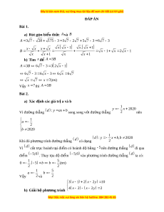 x 3 6 x 6 7 x 7 x 7 (tm) V y ậ x 7 thì A 3 B Bài 2. a) Xác đ nh các ị giá tr a và b ị 1 y x 2020 Vì đư ng ờ th ng ẳ d : y a