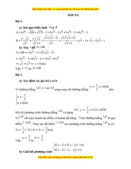 Đây là bản xem thử, vui lòng mua tài liệu để xem chi ết (có lời giải)