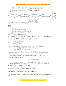 4x 8 x 2y 2 Ta có x 3 5 x 4 y 13 5 x 4 y 13 11 x 33 x 3 1 3x 2 y 10 6x 4y 20 3x 2y 10 3.3 2y 10 y 2 1 ; x y 3; V y ậ nghi m ệ c a h ủ ph ệ ư ng t ơ rình 2 Bài 3. 1. Cho phư ng t ơ rình…. a) Gi i ả phư ng t ơ rình 1 v i ớ m 7 V i ớ m 7 ta có phư ng t ơ rình: 2 x 2 2 2 7 1 x 7 1 0