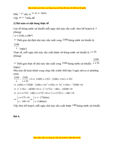 ứ M x x x x 1 2 1 2 đ t ạ giá tr nh ị nh ỏ t ấ 2) Bài toán có n i ộ dung th c t ự ế M t ộ nhà máy theo k ho ế ạch ph i ả s n ả xu t ấ 2100 thùng nư c ớ sát khu n ẩ trong th i ờ gian quy đ nh ( ị s t ố hùng nư c ớ sát khu n nhà m ẩ áy ph i ả s n ả xu t ấ trong mỗi ng y l ầ à b ng ằ nhau). Để đ y nhanh ẩ ti n ế đ công vi ộ c t ệ rong giai đo n ạ tăng cư ng phòng ch ờ ống đ i ạ dịch COVID-19, m i ỗ ngày nhà máy đã s n xu ả ất nhi u h ề n d ơ đ