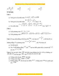6 2 2 1 3 . A . B C. . D 4 2 2 2 II.Tự luận Câu 1. a) Tính giá tr c ị a ủ bi u ể th c ứ A 3 3 7 27 2 243 x 2 x B b) Tính giá tr c ị a ủ bi u ể th c ứ x 1 x 1 khi x 4 2x 13