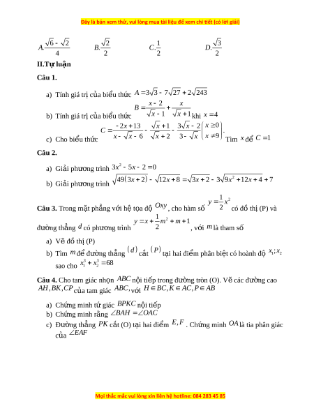 Đây là bản xem thử, vui lòng mua tài liệu để xem chi ết (có lời giải)