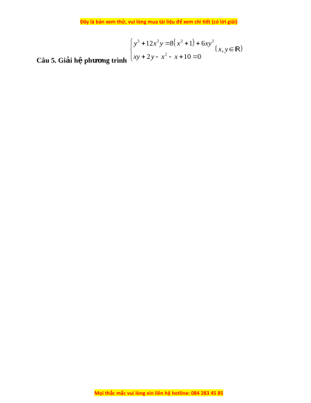 Câu 5. Gi i h ph ng trình ả ệ ươ