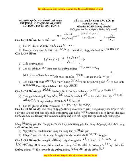 Đ I Ạ H C Ọ QU C Ố GIA TP H Ồ CHÍ MINH Đ Ề THI TUY N Ể SINH VÀO L P Ớ 10