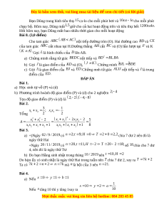 ủ KD và (O), J K .Ch ng m ứ inh BJL BDE c) G i ọ I là giao đi m ể c a ủ BJ và E . D Ch ng ứ mnh t gi ứ ác ALIJ n i ộ ti p và ế I là trung đi m ể c a ủ . ED ĐÁP ÁN Bài 1. a) H c ọ sinh t v ự ( ẽ P) và (d) b) Phư ng ơ trình hoành đ gi ộ ao đi m ể (P) và (d) cho 2 nghi m ệ 2; 4 T a đ ọ gi ộ ao đi m