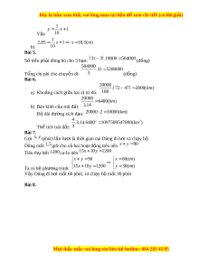 ệ xem ể chi ti t ế (có l i ờ gi i ả ) 1 y x 1 V y ậ 10 1 2,85 x 1 x 18 ,5(m) b) 10 Bài 5. Số ti n ph ề i ả đóng bù cho 3 b n: ạ 31 3 .18000 5 04000 (đồng) 504000 .31 52080 00 T ng chi ổ phí cho chuy n đi ế : 3 (đồng) Bài 6. 20000 .72 47 2800( km) a) Kho ng ả cách gi a ữ hai v t ị rí đó: 180 20000 64 00(km) b) Bán kính c a t ủ rái đ t ấ : 3,14 Độ dài đư ng xí ờ ch đ o: ạ 20000 : 2 1 0000(k ) m 4 2 3 .3,14.6400 1097509547000 (km ) Th t ể ích trái đ t ấ : 3 Bài 7. G i