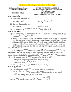 3m 10 x m 2 đông bi n t ế rên Câu II. (2,0 đi m ể ) 1) Cho đư ng t ờ h ng ẳ có phư ng t ơ rình y a