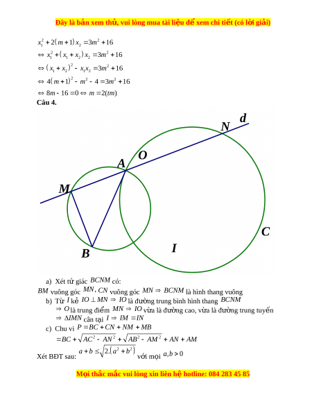 m 2 2 ' 1 m 4 2 m 3 2) 3 ' 0 2m 3 0 m Để phư ng t ơ rình có nghi m ệ 2 x x 2 m 1 1 2 2 Khi đó áp d ng ụ Viet ta có: x x m 4 1 2 M i