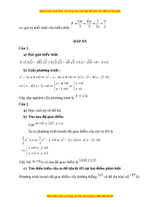 13x 10 y 1 9 P 3 3 2x y Tìm giá trị nh nh ỏ ất c a bi ủ u t ể h c ứ ĐÁP ÁN Câu 1. a) Rút g n bi ọ u t ể h c ứ A 3 2 8 2 3 2. 2 8. 2 3. 2 16 6 4 2 b) Giải phư ng t ơ rình : 2 2 x 5x 4 0