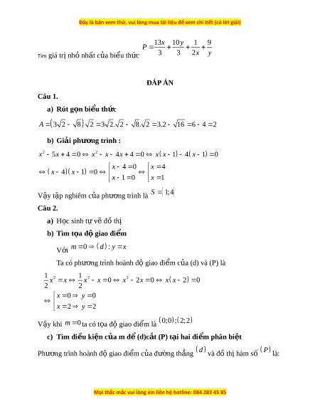 Đây là bản xem thử, vui lòng mua tài liệu để xem chi ết (có lời giải)