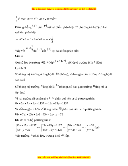 ' 0 1 2m 0 m 2 1 m V y ậ v i ớ 2 thì d c t ắ P t i ạ hai đi m ể phân bi t ệ . Câu 3. G i ọ số l p ớ t ở rư ng ờ A là x (l p)