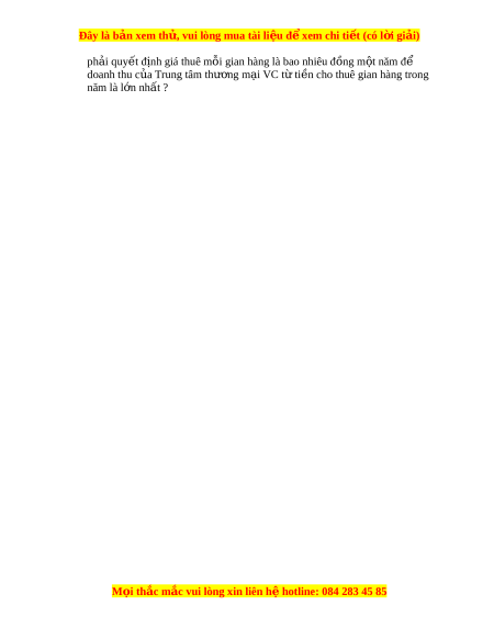 ố C có 100 gian hàng. N u m ế ỗi gian hàng c a ủ Trung tâm thư ng m ơ i ạ VC cho thuê v i ớ giá 100.000.000 đồng (m t ộ trăm tri u đ ệ ng) ồ m t ộ năm thì t t ấ c các ả gian hàng đ u đ ề ư c ợ thuê h t ế . Bi t ế r ng, c ằ m