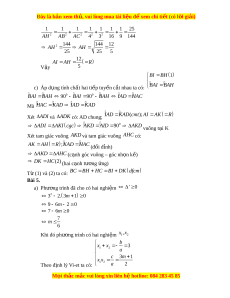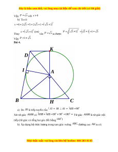 ể , I và H không trùng nhau). a) Ch ng ứ minh AHBI là t gi ứ ác n i ộ ti p ế b) Cho AB 4 c , m AC 3 c . m Tính AI c) G i ọ HK là đư ng kí ờ nh c a ủ A .Ch ng m ứ inh r ng: ằ BC BI DK Bài 5. (2,0 đi m ể ) a) Cho phư ng t ơ rình 2