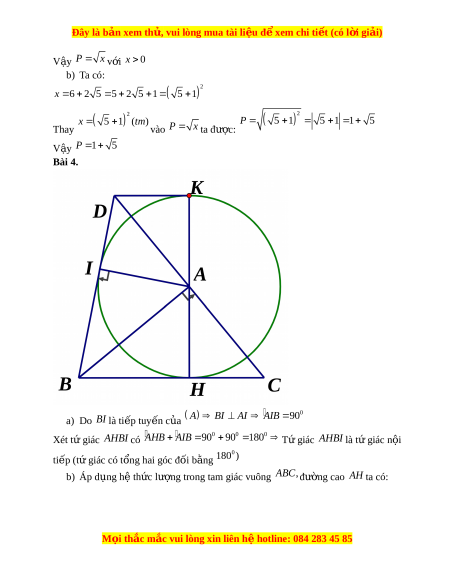 vào P x ta đư c: ợ V y ậ P 1 5 Bài 4. a) Do BI là ti p t ế uy n c ế a ủ A 0