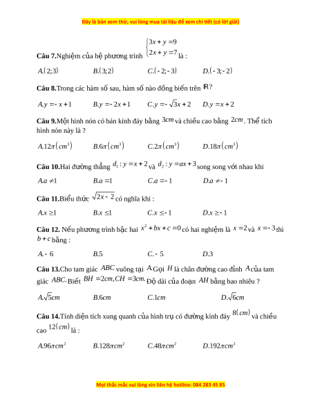 Đây là bản xem thử, vui lòng mua tài liệu để xem chi ết (có lời giải)
