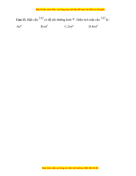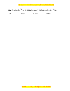 ặ cầu S có độ dài đư ng kí ờ nh d . Di n t ệ ích m t ặ c u ầ S là : 2 2 2 2 . A d . B d C.2 d . D 4 d