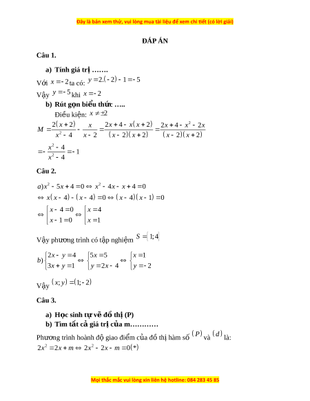 Đây là bản xem thử, vui lòng mua tài liệu để xem chi ết (có lời giải)