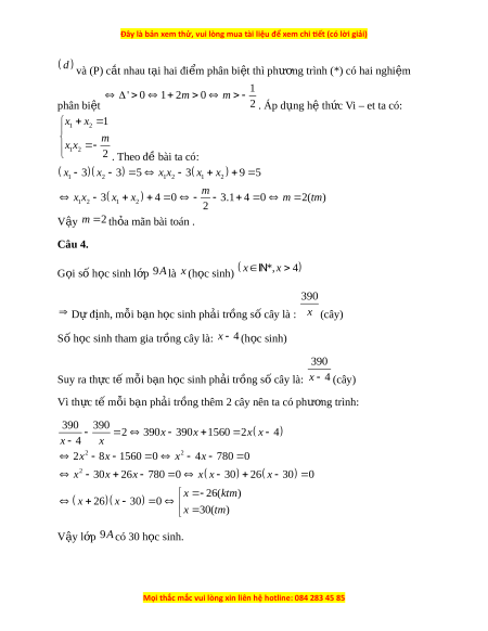 ớ 9A là x (h c ọ sinh) x * , x 4 390 Dự định, mỗi b n h ạ c ọ sinh ph i ả tr ng s ồ cây l ố à : x (cây) Số h c s ọ inh tham gia tr ng cây l ồ à: x 4 (h c s ọ inh) 390 Suy ra th c t ự m ế ỗi b n h ạ c ọ sinh ph i ả tr ng s ồ cây l ố à: x 4 (cây) Vì th c ự t m ế ỗi b n ạ ph i ả tr ng t ồ