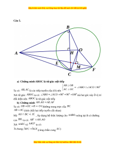 ể E và F(AE AF và d không đi qua tâm O) a) Ch ng ứ minh ABOC là t gi ứ ác n i ộ ti p ế b) G i ọ H là giao đi m ể c a