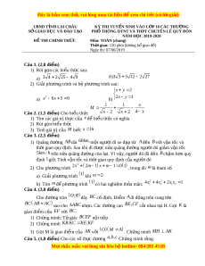 ờ gian: 120 phút (không kể giao đ ) ề Ngày thi: 07/06/2019 Câu 1. (2,0 đi m ể ) 1) Rút g n các bi ọ u t ể h c ứ sau: a) 3 4 2 25 4 9 b)3 3 5 12 2 27 2) Gi i ả phư ng t ơ rình và h ph ệ ư ng t ơ rình sau: x y 2 a) 2 x 6x 5 0 b) 2x y 1 1 1 x M Câu 2. (1,5 đi m ể ) Cho bi u t ể h c ứ x 2 x 2 4 x 1) Tìm các giá tr t ị h c ự c a ủ x đ bi ể u ể th c ứ có nghĩa 2) Rút g n bi ọ u t ể h c ứ 3) Tính giá tr c ị a ủ M bi t ế x 1 6 Câu 3. (2,5 đi m ể ) 1) Quãng đư ng ờ AB dài 60km,m t ộ ngư i ờ đi xe đ p ạ t ừ A đ n ế B v i ớ v n t ậ ốc và th i ờ gian quy đ nh. Sau khi ị đi đư c ợ n a quãng đ ử ư ng ờ ngư i ờ đó gi m ả v n ậ t c ố