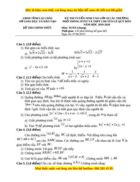 ệ xem ể chi ti t ế (có l i ờ gi i ả ) UBND T N Ỉ H LAI CHÂU KỲ THI TUY N Ể SINH VÀO L P Ớ 10 CÁC TRƯ N Ờ G SỞ GIÁO D C Ụ VÀ ĐÀO T O Ạ
