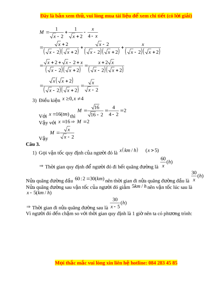 x 2 x 2 x 2 3) Đi u ki ề ện x 0 , x 4 16 4 M 2 V i ớ x 1 6(tm) thì 16 2 4 2 V y ậ v i ớ x 1 6 M 2 x M V y ậ x 2 Câu 3. 1) G i ọ v n t ậ ốc quy định c a ng ủ ư i
