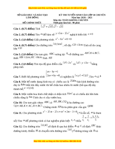 SỞ GIÁO D C Ụ VÀ ĐÀO T O Ạ KỲ THI TUY N Ể SINH VÀO L P Ớ 10 CHUYÊN LÂM ĐỒNG Năm h c ọ 2020 – 2021