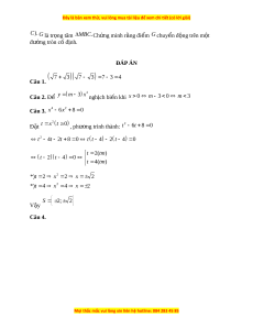 C). G là tr ng t ọ âm M BC. Ch ng ứ minh r ng đi ằ m ể G chuy n đ ể ng t ộ rên m t ộ đư ng ờ tròn c đ ố nh. ị ĐÁP ÁN 7 3 7 3 7 3 4 Câu 1.