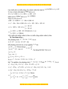 x 30 x 50 0 x 50 0 x 30 y 80 30 50 (ktm do x y) x 50 y 30( tm) V y ậ chi u dài ề m nh ả vư n l ờ à 50m và chi u r ề ng m ộ nh ả vư n l ờ à 30m b) Tìm tham s m ố … Xét phư ng ơ trình : 2