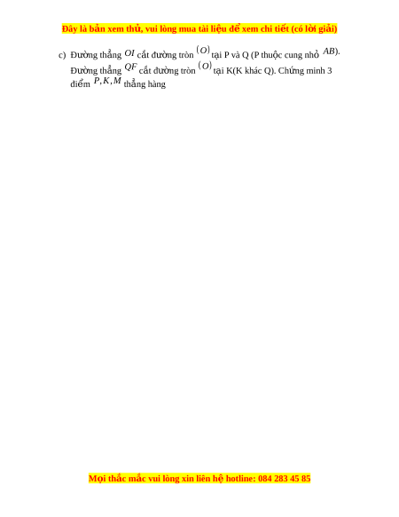ệ xem ể chi ti t ế (có l i ờ gi i ả ) c) Đư ng ờ th ng ẳ OI c t ắ đư ng t ờ ròn O t i ạ P và Q (P thu c ộ cung nh ỏ AB). Đư ng ờ th ng ẳ QF c t ắ đư ng t ờ ròn O t i ạ K(K khác Q). Ch ng m ứ inh 3 đi m